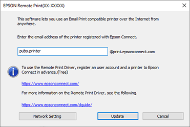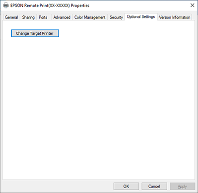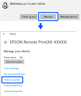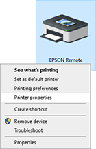 From Control Panel > Hardware and Sound > Devices and Printers, right-click the Epson Remote Print(XXXXXX) icon, and then select Printer Properties.